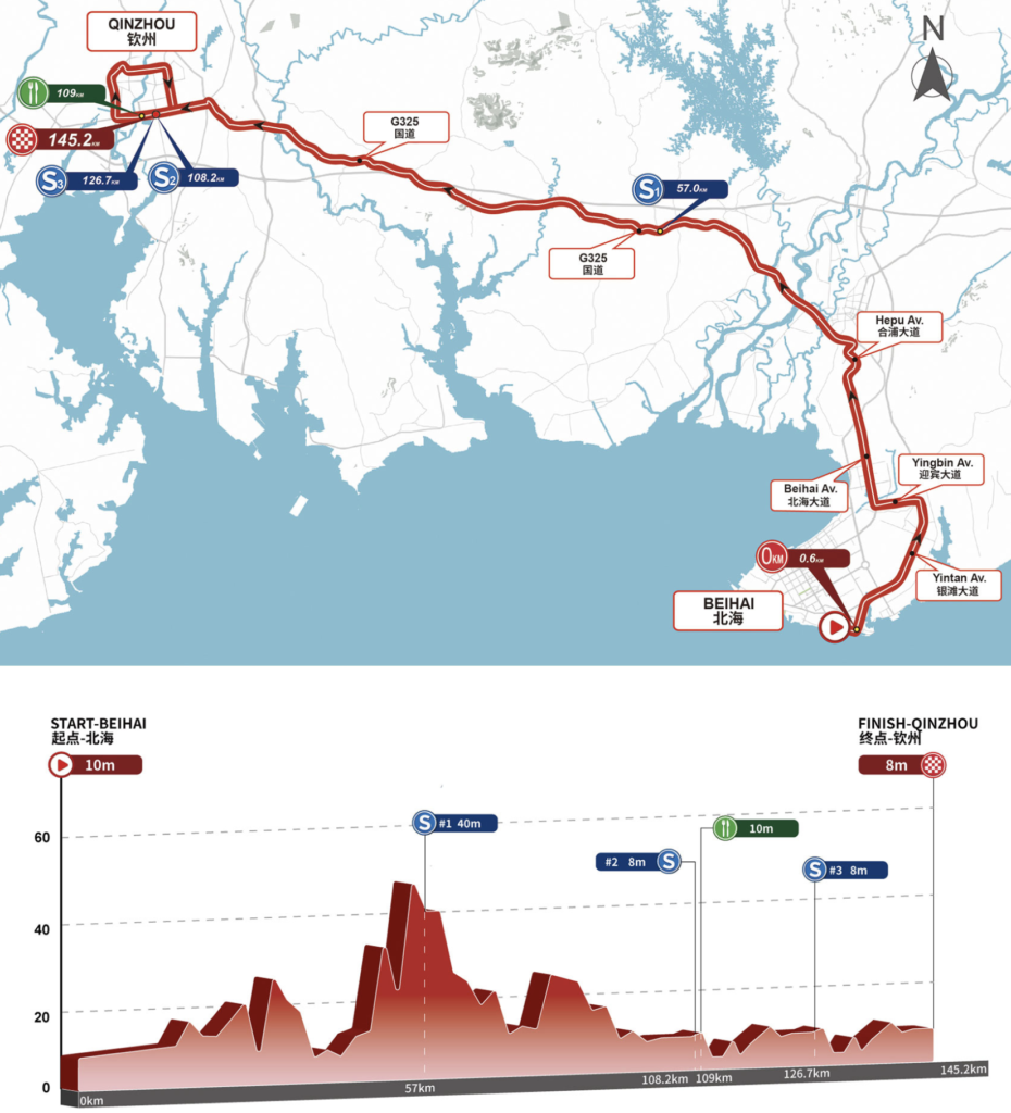 Mercredi 17 octobre : 2e étape, Beihai – Qinzhou, 145,2km