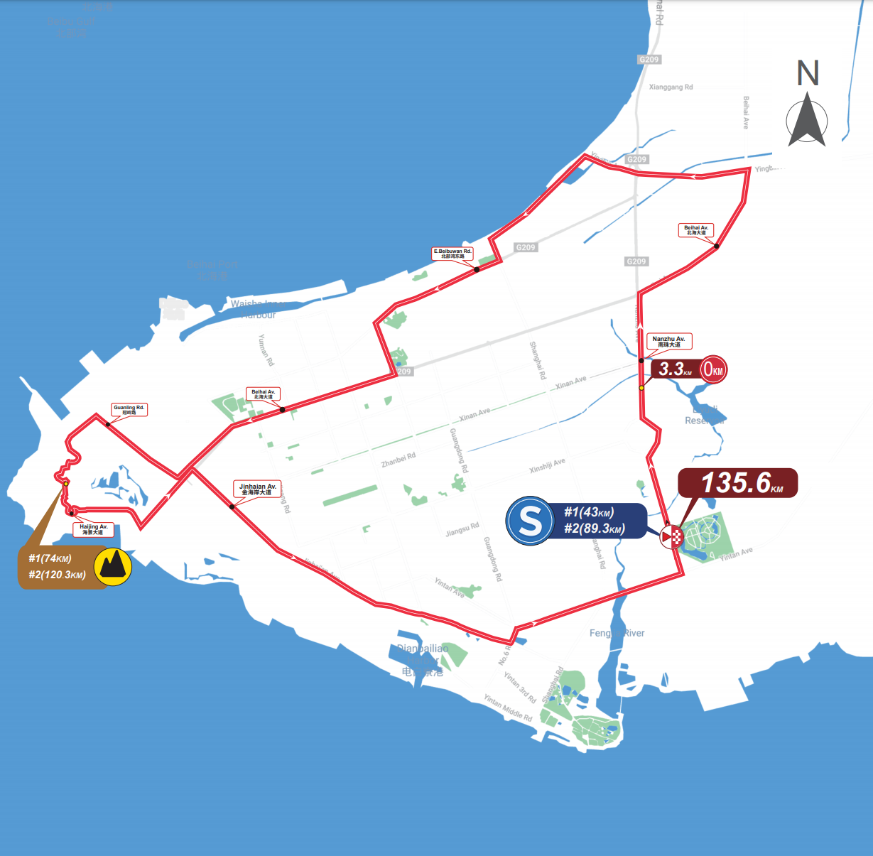 Jeudi 17 octobre : 1ère étape, Beihai > Beihai, 135,6km