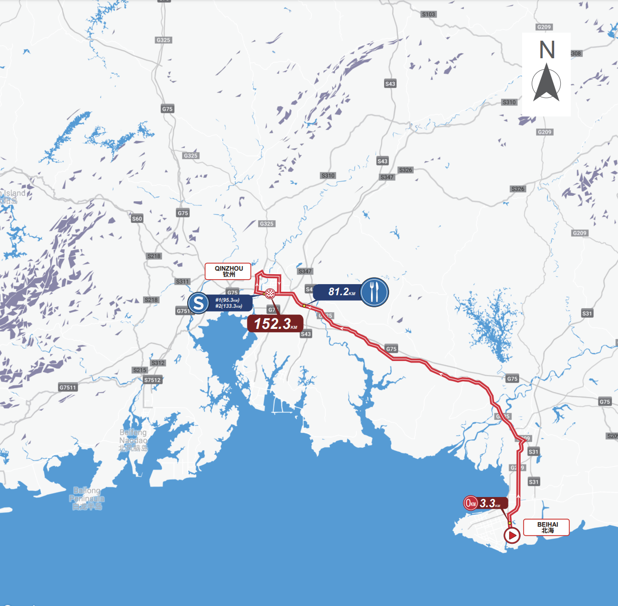 Vendredi 18 octobre : 2e étape, Beihai > Qinzhou, 152,3km