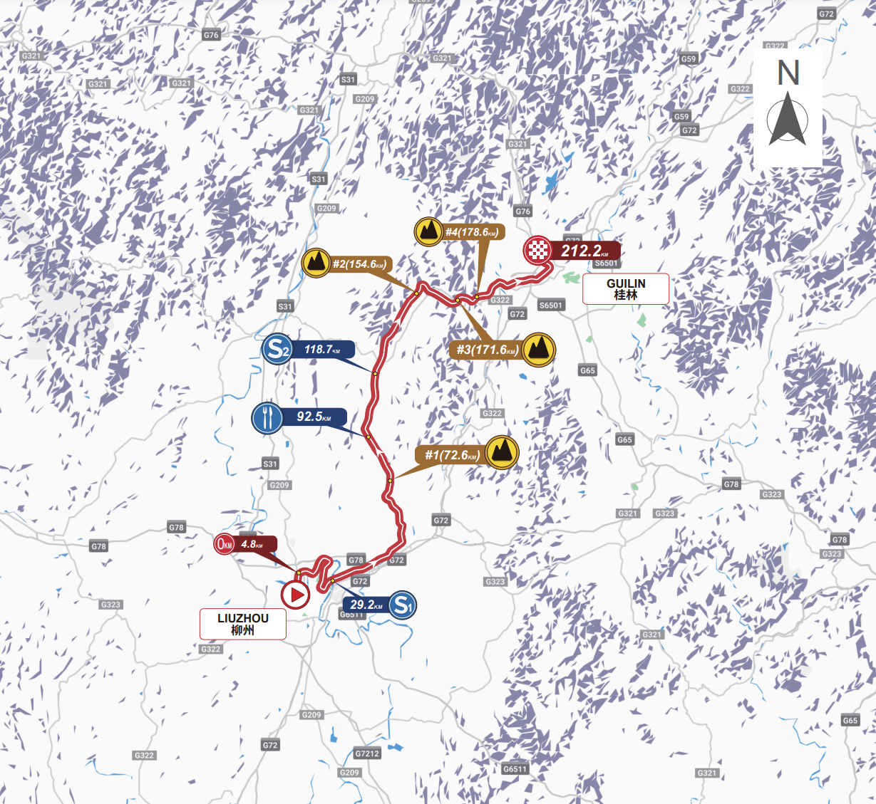 Lundi 21 octobre : 5e étape, Liuzhou > Guilin, 212,2km