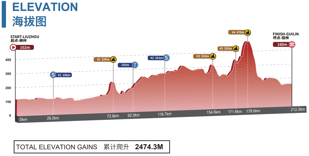 Après cette explication au sommet, il faudra avaler la plus longue étape de l’épreuve avec 212 kilomètres et 2474 mètres de dénivelé. L’arrivée sera jugée au terme d’une descente, mais quatre côtes permettront aux offensifs de prendre de l’avance. Et pourquoi pas de faire bouger les lignes au général, avant une nouvelle étape accidentée pour conclure. Cette fois, l’arrive sera disputée sur le plat, mais deux belles bosses émaillent les cinquante derniers kilomètres. Il sera alors temps de tenter son va-tout pour renverser le classement général. A Guilin, la ville-arrivée, il sera trop tard et nous connaîtrons le vainqueur de la troisième édition du Tour de Guangxi.