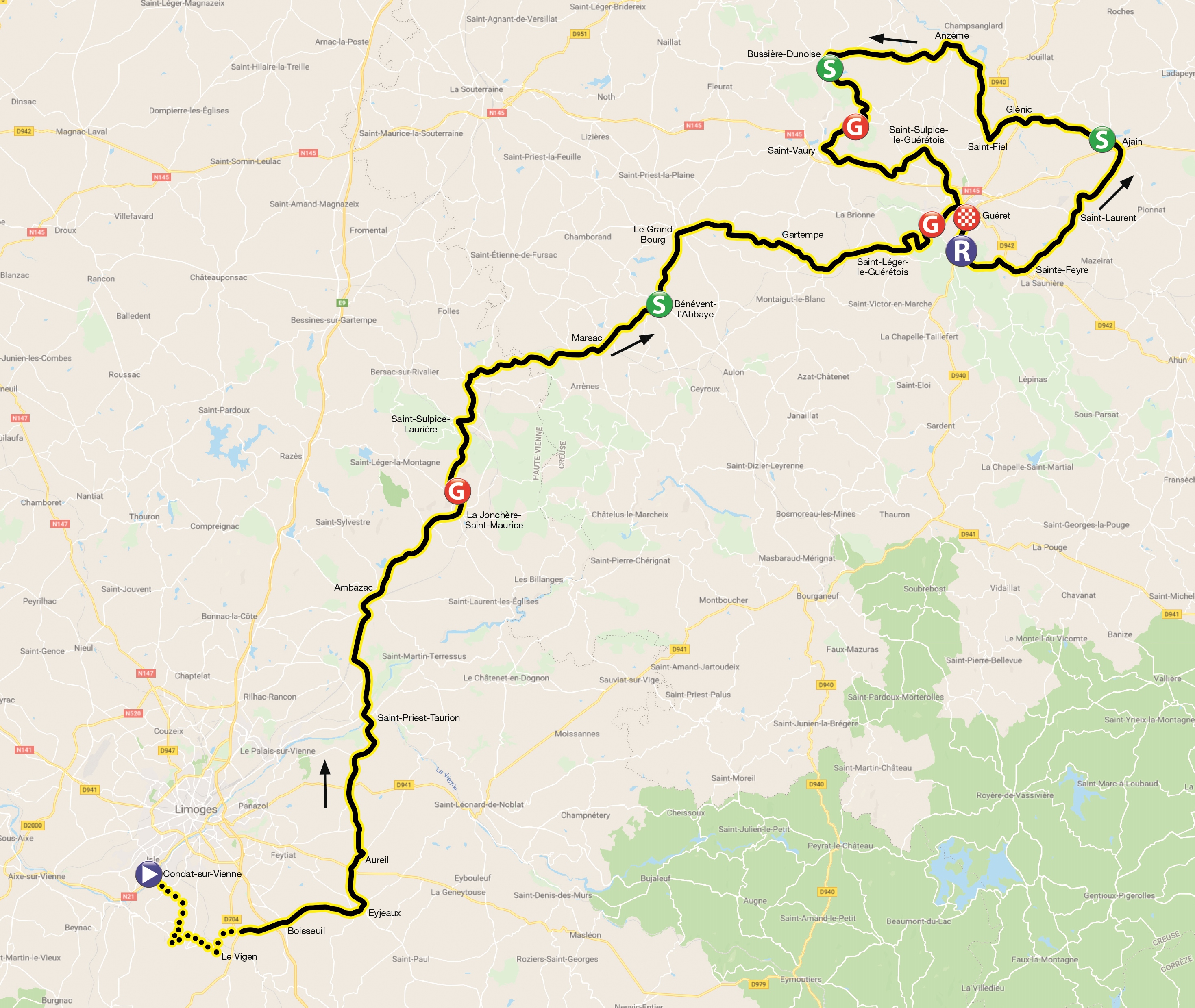21/8 1ère étape : Condat-sur-Vienne > Guéret, 172,2km