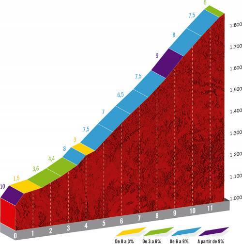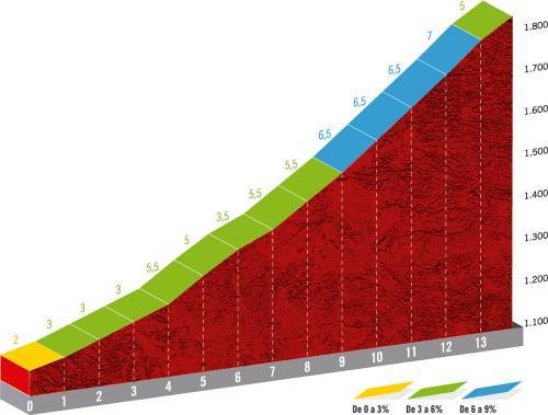 Attention aux défaillances sur la route de Becerril de la Sierra. Après une journée record qui a vu les coureurs parcourir 219 kilomètres à plus de 50km/h, le peloton a rendez-vous avec quatre cols de première catégorie. En forme de montagnes russes, le parcours n’accordera aucun répit. Il y a bien vingt kilomètres plats pour commencer, mais cette portion devrait être propice aux premières attaques. Après un départ qui devrait une nouvelle fois être rapide, les coureurs arriveront au pied du Puerto de Navacerrada (1ère cat., 11,8km à 6,3%). D’abord roulante, la montée se durcit en deuxième partie avec des pentes entre 7,5 et 9% dans les cinq derniers kilomètres. Au sommet, les coureurs seront à 1860 mètres d’altitude, le point culminant de l’étape. Ils basculeront alors dans une longue descente avant d’aborder le versant le plus facile du Puerto de Morcuera (1ère cat., 13,2km à 5%). Passée l’ascension et la descente qui suit, il faudra aller chercher un versant plus difficile du même col pour un total de 10,4km à 6,7%. La dernière partie de la montée est toujours à 7% ou plus et pourrait permettre les premières attaques. Enfin, il faudra avaler le Puerto de Cotos (1ère cat., 13,9km à 4,8%) avant de terminer le travail dans la descente qui suit. Les derniers kilomètres de l’étape sont en légère montée, mais cela ne devrait pas permettre de grandes manœuvres.