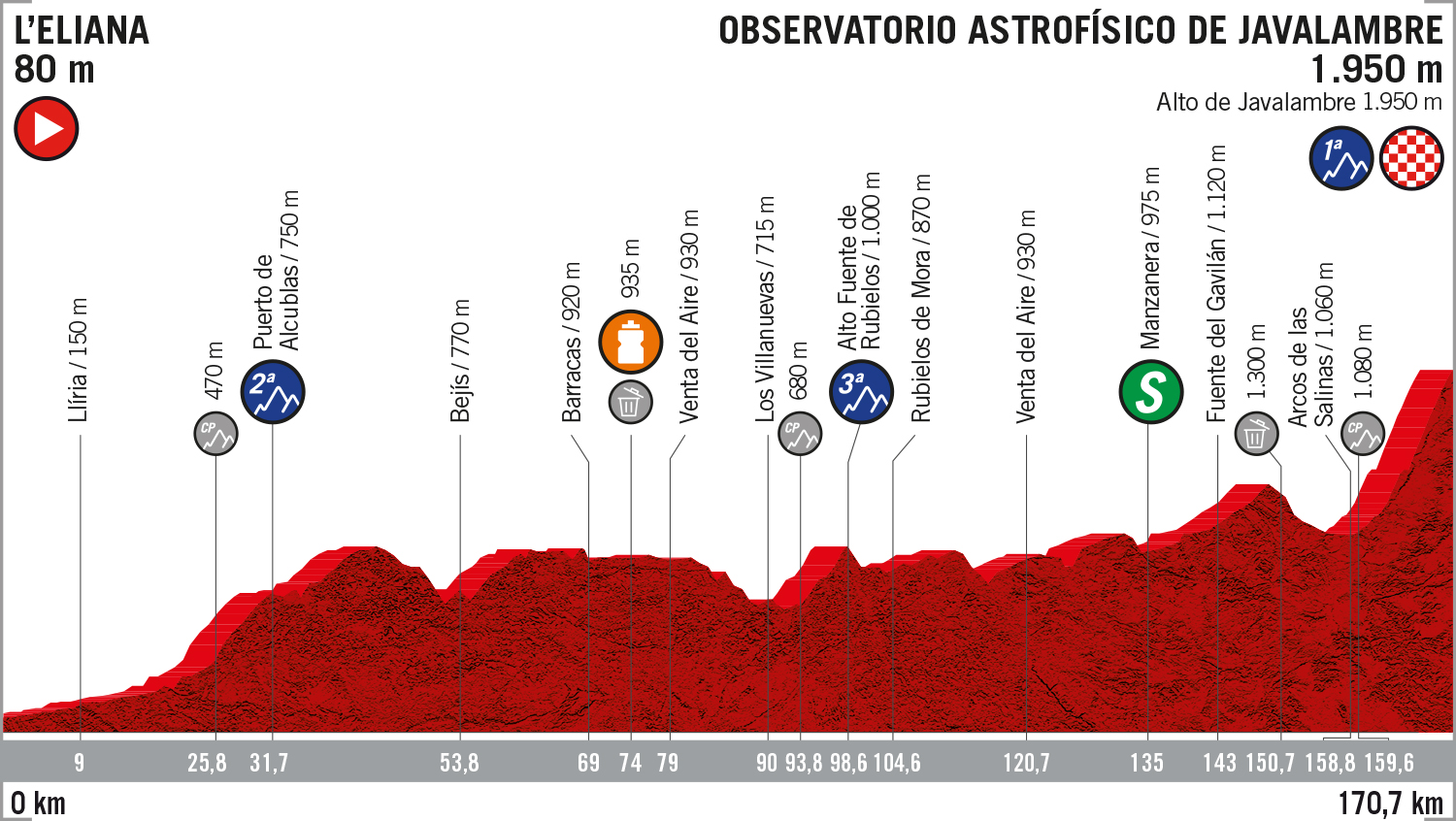 Mercredi 28 août, 5e étape : L’Eliana > Observatorio Astrofisico de Javalambre, 170,7km