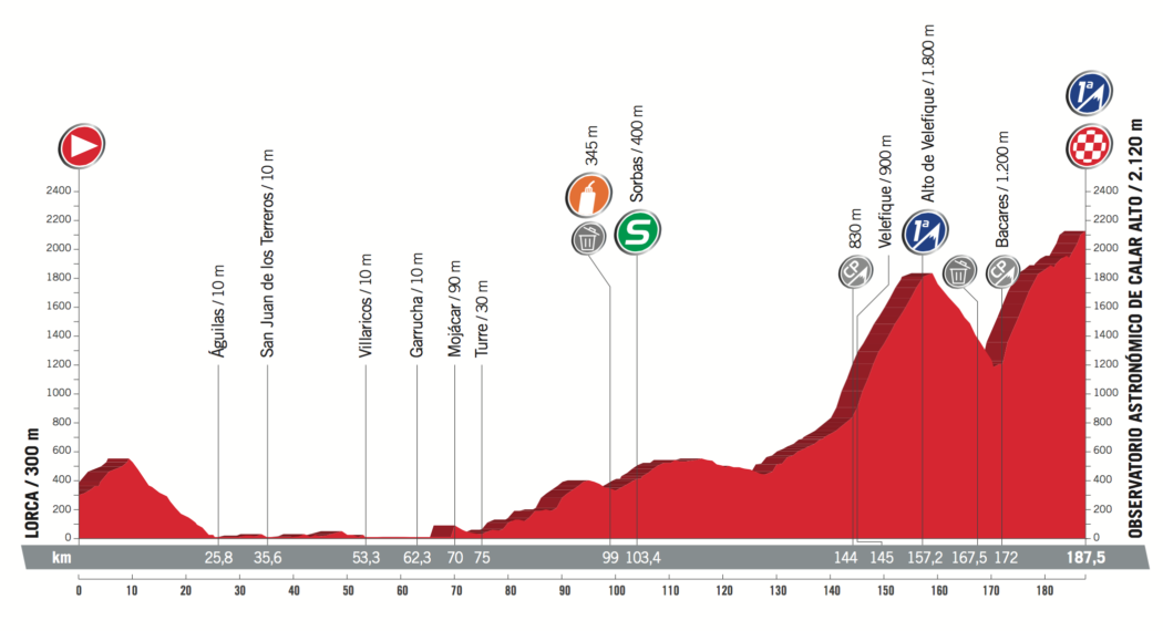 Le peloton s’apprête lui aussi à débuter le Calar Alto (15,5 à 5,9%).